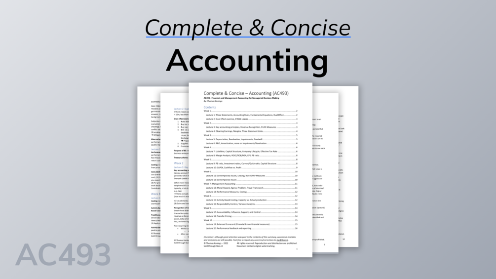 This summary is for the AC493 Financial and Management Accounting for Managerial Decision Making course at the London School of Economics (LSE).